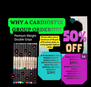 So you decided that our premium weighted 8.5-9.2 oz. per set stix with no tips to break off are the stix for you? Can't decide on a color? We have the solution. These Double Grip are also Double Colored. Always follow us on facebook for special promos and get yourself a pair, or two! Please make sure to watch the video in this listing that explains care and use. These are patent pending so you won't find them anywhere else!